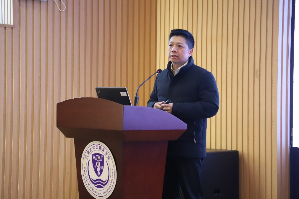 2025年11月19日上午,由江南大学研究生院主办,无锡医学院承办的“江南讲坛”校庆专场暨2025年研究生学术文化节第一百五十五、一百五十六讲在无锡医学院C101报告厅顺利举行。本次讲座特邀中国科学院上海药物研究所江陆斌研究员和陈昌斌研究员担任主讲,由无锡医学院执行院长孙宁、院长助理刘贇共同主持,医学院青年骨干教师及百余名学生共同聆听了此次讲座。