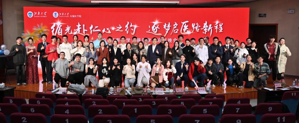 暖冬迎新,医路聚江南。近日,以“循光赴仁心之约,逐梦医路启新程”为主题的2025年医学院迎新晚会在北区大学生活动中心音乐厅隆重举行。无锡医学院党委书记向琪、党委副书记包羽、副院长代卉、陈雪,江南大学附属中心医院教育处处长姜宇,新生班主任、全体辅导员、教师代表与全院学子欢聚一堂,以歌舞传情、以榜样为铭,在五育并举的育人画卷中,共同开启医路新征程。