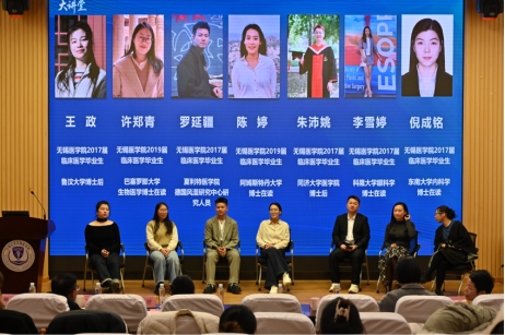 在学术报告环节,校友们结合各自研究领域,分享了具有国际水平的最新进展,六位校友本科均毕业于江南大学无锡医学院临床医学专业,如今分别在比利时鲁汶大学、西班牙巴塞罗那大学、德国夏利特医学院、荷兰阿姆斯特丹大学、同济大学医学院、德国科隆大学等国内外知名高校与科研机构从事前沿医学研究,形成了具有国际视野与创新能力的“无锡医学院优秀毕业生群像”。