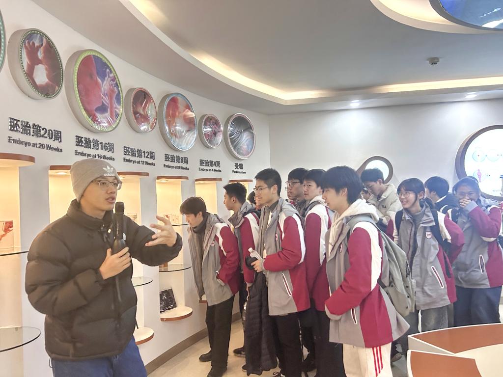 活动伊始,学院院长助理王小英老师热情接待了研学师生,并带领大家参观了医学院。王老师从学院的发展沿革、“市校共建”机制的独特优势、雄厚的师资力量以及丰富的附属医院资源等方面,系统介绍了无锡医学院的整体概况与办学特色。随后,她重点解读了学院“卓越医师创新班”的培养理念、课程特色与招生政策,引发了在场同学的浓厚兴趣与热烈提问,现场互动气氛活跃。紧接着,同学们在老师的引导下走进了充满探索意义的人体科学馆。馆内丰富的标本、精细的模型与前沿的数字化展示,将书本上的理论知识转化为直观而立体的认知,让同学们在惊叹于生命奥秘与人体结构之精妙的同时,也深刻感受到了医学的严谨与崇高。