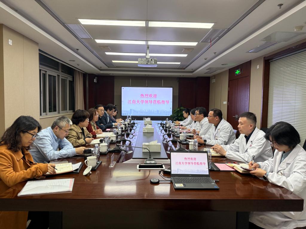 2025年10月27日,江南大学党委书记吴正国,党委副书记、纪委书记李旸,党委常委、副校长马鑫,纪委副书记、纪委办公室主任兼监察处处长魏静,无锡医学院党委书记向琪、执行院长孙宁、党委副书记兼副院长包羽,副院长代卉一行赴江南大学附属妇产医院走访调研。江南大学附属妇产医院党委书记刁文凯,党委副书记、院长顾燕芳,纪委书记朱迎春以及党办、科教处、人事处等相关部门负责人参加座谈。